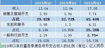 由于销售及营销开支的大幅提升,以及发起和服务费用的增长,即使在收入同比大增80.42%的情况下,玖富在第三季度的经调整净利润则同比下滑32.51%。
