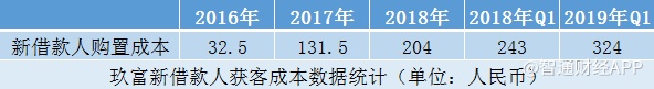 从玖富招股书中披露的数据来看,在2019年第一季度时,玖富新借款人的获客成本已高达324元每人,同比增长超30%,随着时间的推移,玖富的获客成本也将逐渐上升。