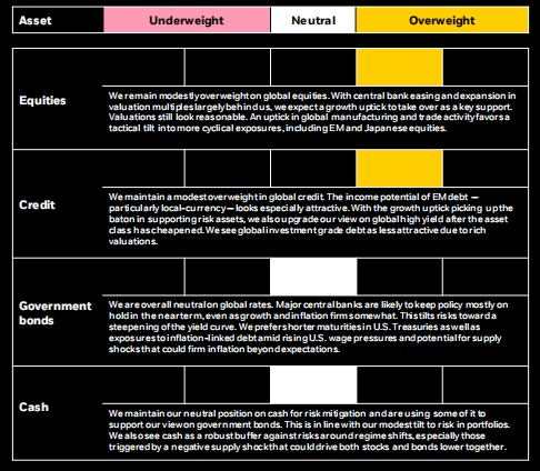 总体来看,贝莱德智库保持温和的风险支持立场,并期待日本和新兴市场等周期性资产在战略上有出色表现。
