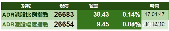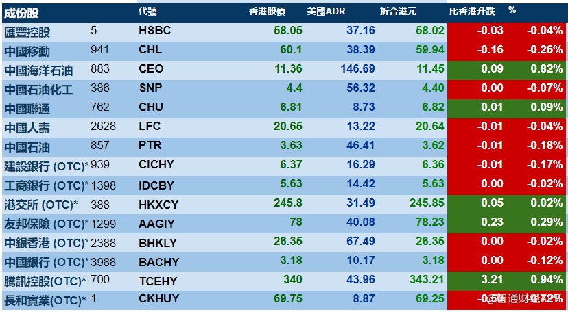 智通财经APP获悉,周三(12月11日),美股小幅低开,最后小幅收涨。港股ADR指数也小幅上涨,按比例计算,收报26683点,涨38.43点或0.14%。汇丰控股收报58.02元,较港收市跌0.03元;腾讯控股收报343.21元,较港收市涨3.21元。