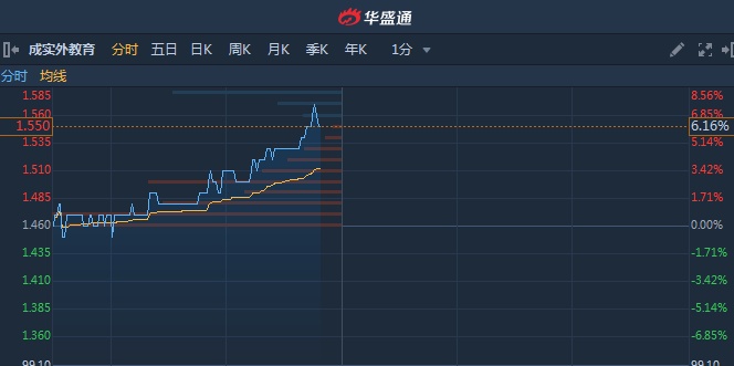 智通财经APP获悉,成实外教育(01565)结束六连阴,盘中止跌反弹逾6%,收复10日均线。截至11时48分,涨6.16%,报价1.55港元,成交额2858万。