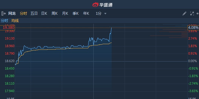 智通财经APP获悉,网龙(00777)午后股价放量走强,突破所有均线。截至13时35分,涨4.08%,报价19.38港元,成交额2299万。