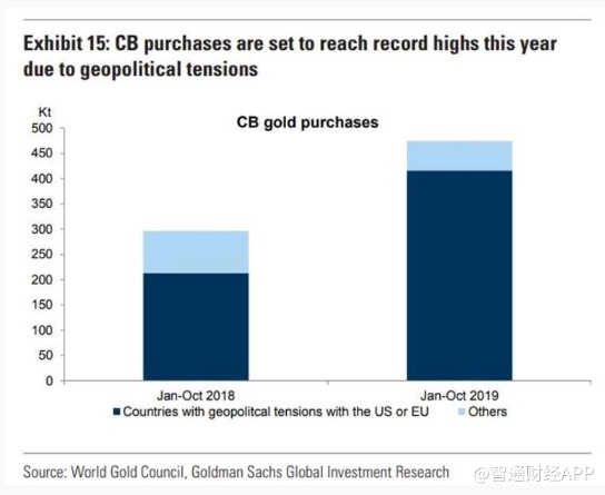 地缘政治的不确定性,已经转化为更大的黄金需求。哥伦比亚广播公司在全球范围内一直以非常强劲的速度购买黄金,2019年全球央行对黄金的购买量也创历史记录。
