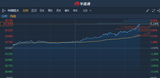 港股异动︱中国恒大(03333)午后成交活跃 尾盘涨幅扩大逾5%