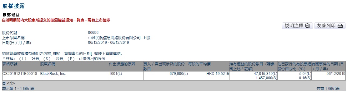 智通财经APP获悉,联交所最新资料显示,12月6日,贝莱德增持中国民航网络(00696)