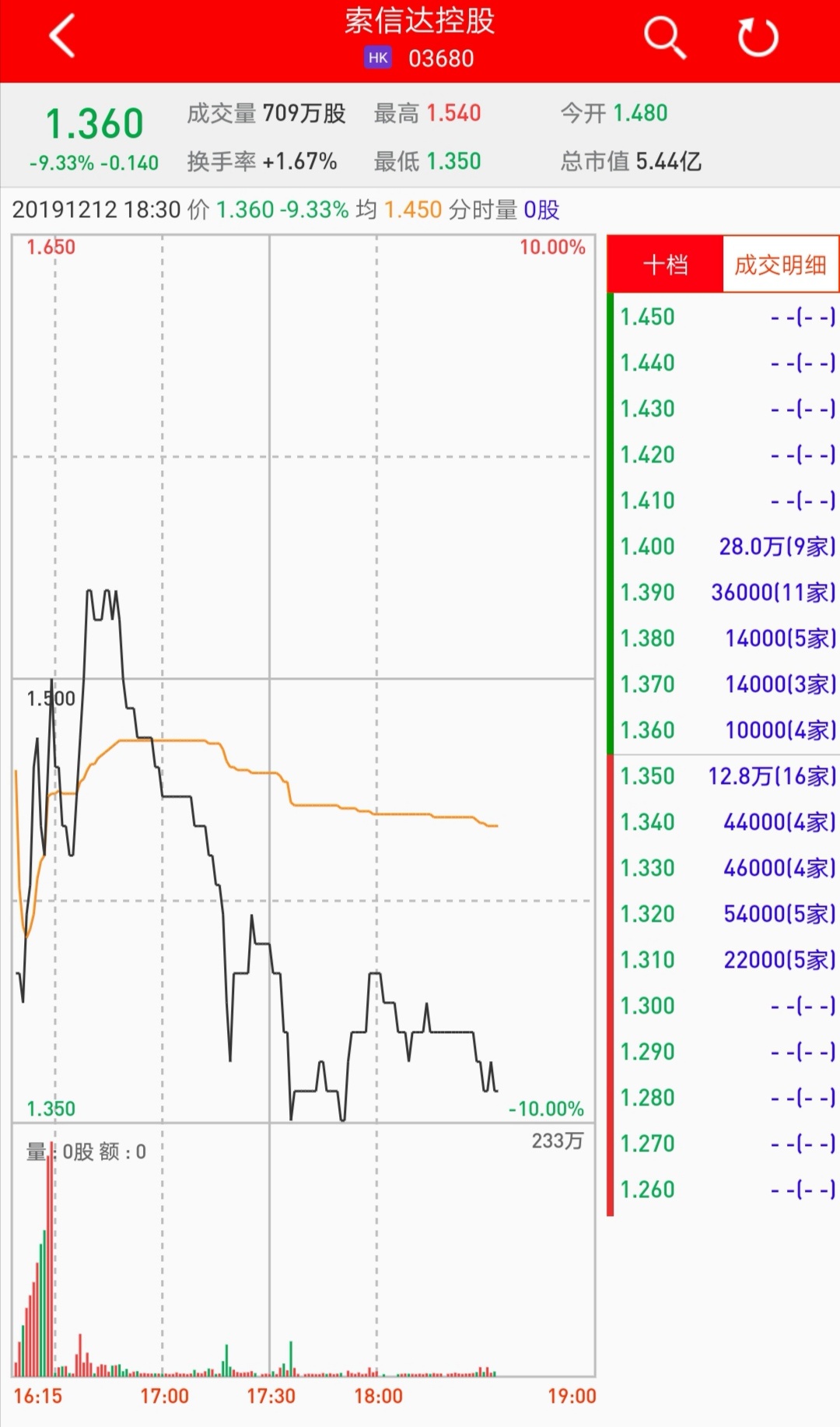 智通财经APP获悉,索信达控股有限公司 (03680)将于12月13日挂牌,该股暗盘低开高走,随后股价逐渐回落,截至收盘,利弗莫尔证券暗盘交易显示其报价1.36港元,较招股价1.5港元跌9.33%。每手2000股,不计手续费,每手亏280港元。