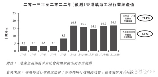 益普索报告显示,香港填海工程行业的总产值由2013年的约32亿元增加至2018年的约168亿元,复合年增长率约为39.1%。预期香港填海工程行业的总产值将由2019年的约159亿港元增加至2022年的约169亿港元,复合年增长率约为2.1%。