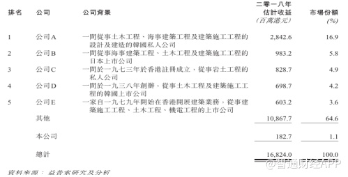 值得注意的是,裕勤控股2018财年约1.83亿元的海事建筑工程收入全部来自填海工程业务。按收益计算,公司占香港2018年填海工程行业总市场份额约1.1%。