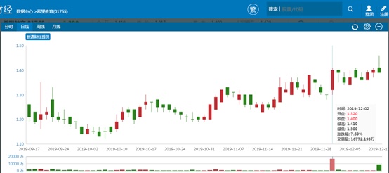 紧接着在休息日的12月1日晚间,希望教育发布公告称,公司接获控股股东特驱集团和主要股东珍荣环球的告知,于2019年11月29日,CHINA EVERBRIGHT FINANCIAL INVESTMENTS LIMITED(CEFI)和特驱集团各自同意,以1.302港元价格向珍荣环球收购1.27亿股和2842万股公司股份,股份转让结算预期将12月4日当天或前后进行。因此在公告后的首个交易日12月2日,公司股价以较前一日扩大43倍的1.68亿股成交量、2.19亿港元成交额,录得7.69%的单日放量大涨,披露易数据显示12月4日珍荣环球也完成了股份的出让。