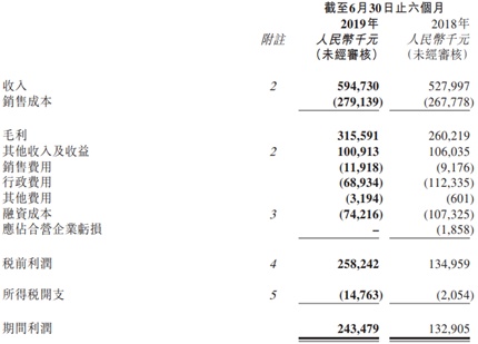 2019年上半年得益于在校人数增长,希望教育收入同比增长12.6%至5.95亿元人民币(单位下同),在校人数增长叠加成本控制趋稳,公司毛利同比提升21%至3.16亿元,毛利率率同比提升3.8个百分点至53.1%。再加上行政费用下降38.6%至6893.4万元,融资成本下降30.8%至7421.6万元,公司最终净利润录得2.43亿元,同比大幅增长83.2%,即使是扣除上市费用和汇兑收益的核心净溢利也同比增长33.9%至2.57亿元。