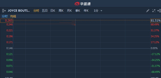 BOUTIQUE(00647)昨日晚间发布公告,获大股东溢价约91.78%提私有化,今日复牌,早盘跳空高开,暂居涨幅榜首位。截至9时20分,涨81.51%,报价0.265港元,成交额48.17万。