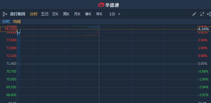 智通财经APP获悉,渣打集团(02888)昨日盘后发布公告,拟13亿美元出售于印尼银行Permata的44.56%股权,早盘股价大幅攀升,一度高见74.65港元,创一年半新高。截至9时35分,涨4.34%,报价74.5港元,成交额4974万。