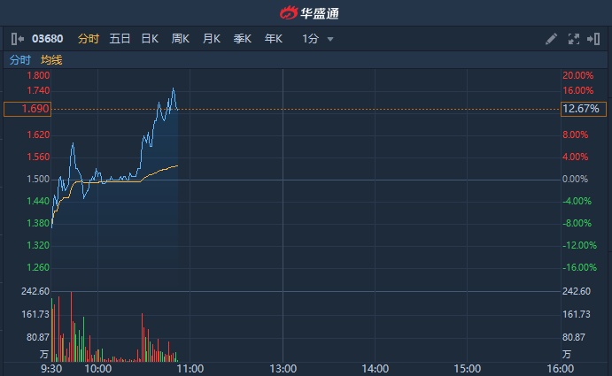 智通财经APP获悉,新股索信达控股(03680)早盘低开逾8%,盘中股价由跌转涨,一度涨超16%。截至发稿,涨13.33%,报1.7港元,成交额7772.68万港元。