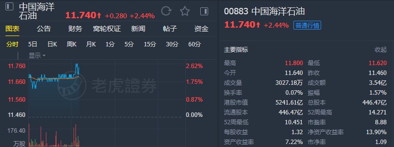 该行称,中海油明年业务会持续增长,预计管理层将会把现有的产量目标提升,因今年的产量较预期好,预计明年的资本开支为850亿至950亿元人民币。