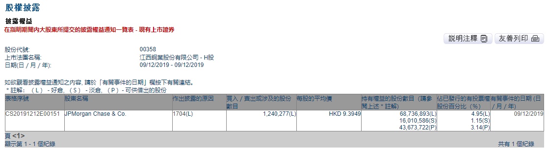 智通财经APP获悉,联交所最新资料显示,12月9日,摩根大通减持江西铜业(00358)