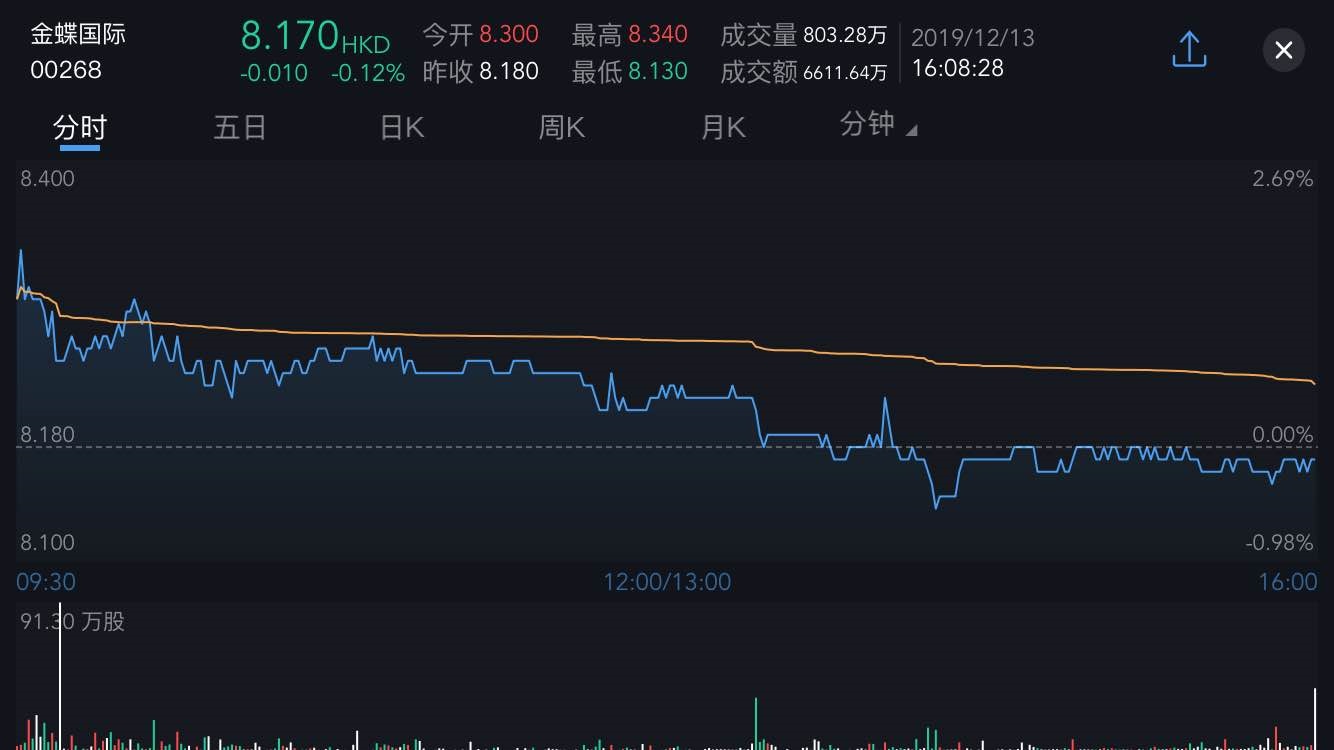 截至今日收盘,金蝶国际(00268)涨0.12%,报8.17港元。