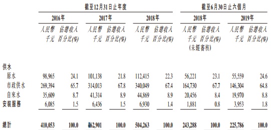 大部分收入来源于向台州市市政供水服务供应商销售原水及市政供水,分别占截至2016年、2017年及2018年12月31日止年度以及截至2019年6月30日止六个月持续经营业务总收入89.8%、89.6%、89.7%及89.4%。