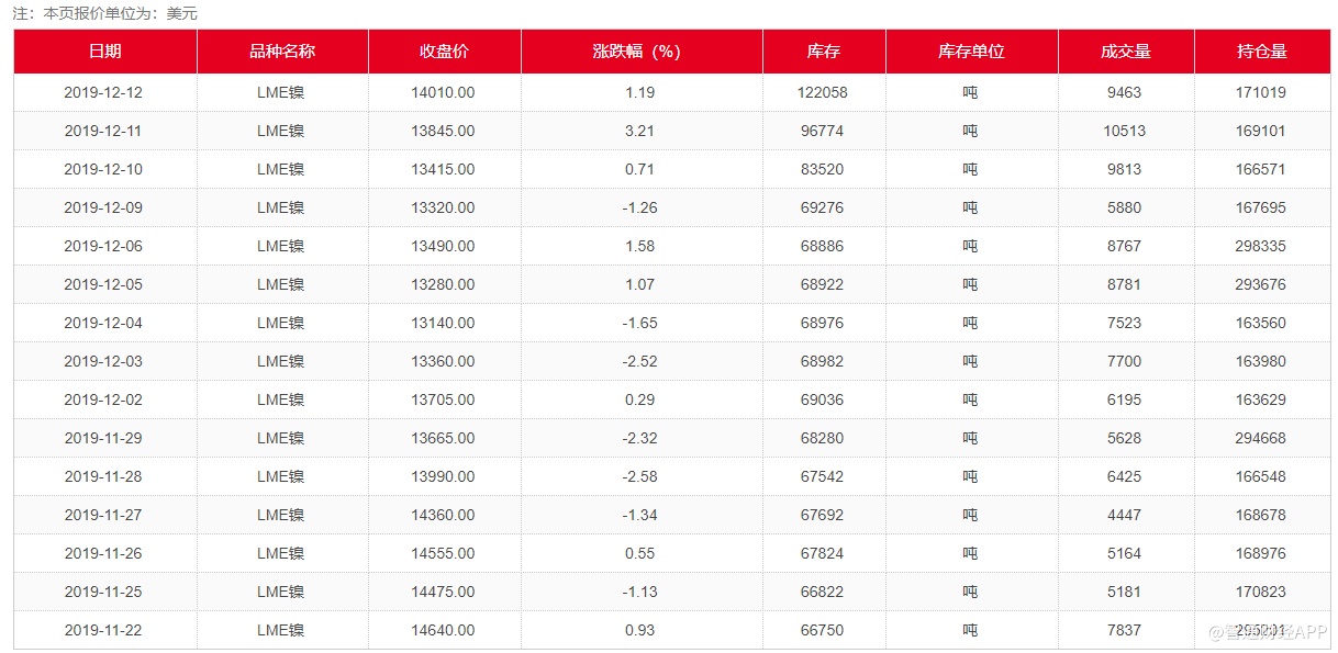 目前来看,如果印尼确定从2020年初开始执行禁令,那么下半年市场将开始吃紧。短期内,市场需要应对伦敦金属交易所(LME)仓库的低库存,而去库存也是镍价上涨的必要条件。