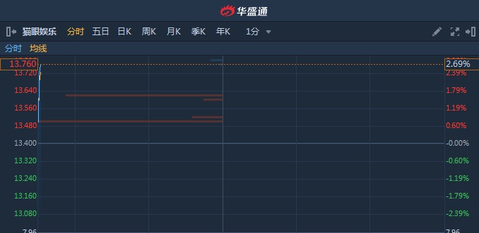 港股异动︱市前现一宗大手成交涉资4.93亿 猫眼娱乐(01896)现涨2.69%