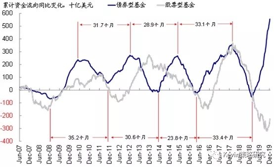 在此背景下,直接受益于利率下行的资产,例如在2019年海外资产中明显领跑的债券、REITs、黄金等都可能因此受到一定影响;而单纯的估值中枢抬升可能也将受限。此外,从股债之间资金的轮动和配置情况看,两者的背离幅度和持续时间也都到了历史非常极端的情形。