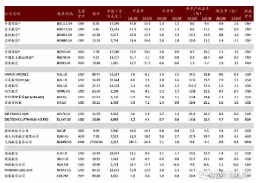 当前估值仍低于历史均值,多因素催化股价上行。公司当前市净率低于历史均值,我们认为未来多重利好催化股价上行:1)票价市场化改革稳步推进。公司已经上调了北京-成都等部分航线的经济舱全价,有望增厚业绩;2)春节错期利好经营表现。考虑2020年春节假期(2020年1月24日除夕)早于2019年(2019年2月4日除夕),我们估计2020年1、2月供需增速或有望进一步加快;3)油汇风险趋缓。根据中金宏观组的预测,2020年人民币兑美元的汇率基本持平(vs. 2019年贬值约2.7%),汇兑损失同比减少或将增厚净利润约13亿元。根据中金大宗组的预测,2020年布伦特油价均价为55.8美元/桶,同比下降约5-8美元/桶,有望同比增厚净利润约20-30亿元。