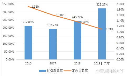 与此同时,该行2016-2018年及2019上半年,不良贷款率远低于行业平均水平,分别为1.91%、1.60%、1.36%和1.09%,拨备覆盖率为212.86%、192.77%、243.72%和323.27%,拨贷比为别为4.07%、3.09%、3.31%和3.52%,显著高于中国银保监会的监管要求。