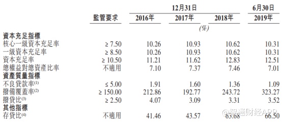 值得注意的是,截至2019年6月30日,贵州银行的核心一级资本充足率、一级资本充足率及资本充足率分别为10.31%、10.31%及12.51%,历年来均满足监管对“非系统重要性银行”的资本要求。