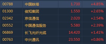 智通财经APP获悉,5G概念获资金追捧,中国铁塔(00788)急升近5%,领涨板块。截至10时57分,中国铁塔(00788)涨4.85%,报价1.73港元,俊知集团(01300)涨2.65%,京信通信(02342)涨2.54%,中国通信服务(00552)涨2.39%。