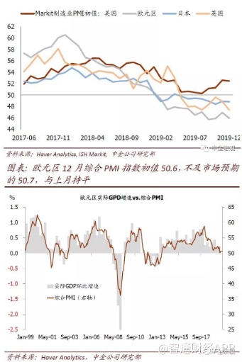 欧元区12月综合PMI指数与上月持平于50.6,依然较为疲软,也弱于市场预期。基于10~12月连续3个月综合PMI指数均处于50.6这一低位的情况,我们预计欧元区4季度实际GDP环比增速可能仅仅为0.1%。