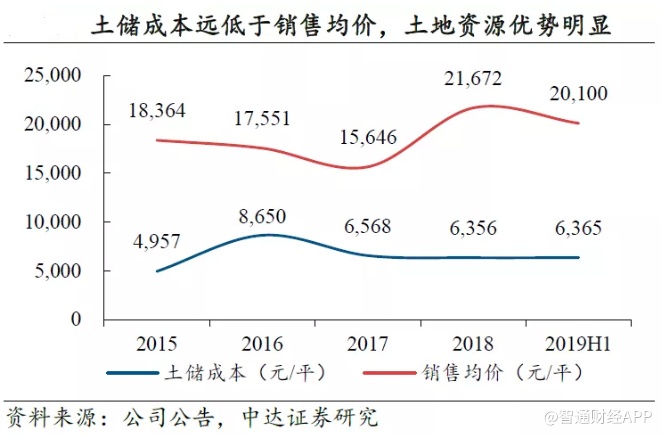 从过去几年的拿地情况看,融信中国通过竞拍、合作、收并购、一二级联动等方式获取土地,将拿地成本维持在低位。上半年,公司合约销售均价为2.01万元/平方米,截至2019年6月30日,公司土地储备权益地价为6365元/平方米,仅为公司销售均价的31.7%,土地资源优势明显,保障了后续利润释放的空间。