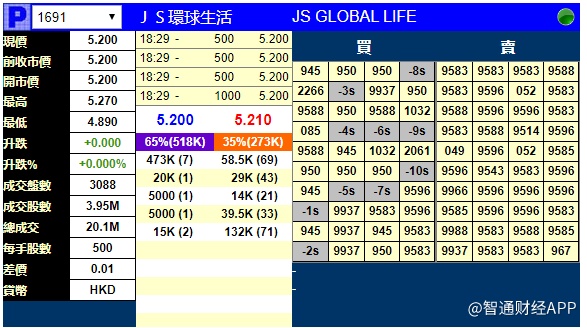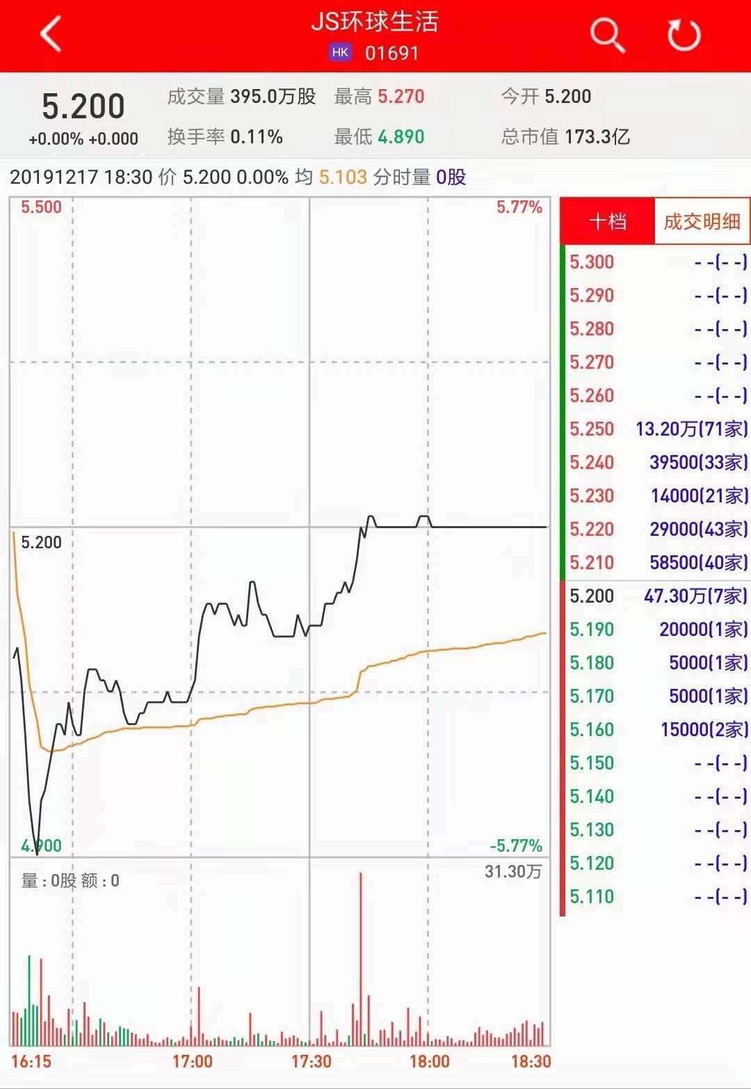 智通财经APP获悉,JS环球生活(01691)将于12月18日挂牌,截至收盘,辉立证券暗盘交易显示其报价5.20港元,和招股价5.20港元持平。每手500股,不计手续费,每手赚0港元。