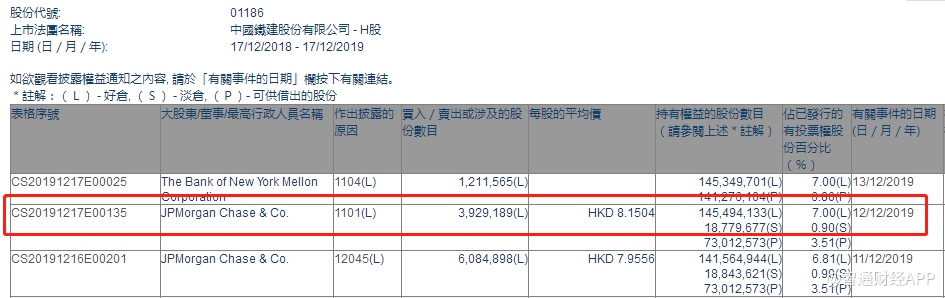 智通财经APP获悉,联交所最新资料显示,12月12日,摩根大通增持中国铁建(01186)392.92万股,每股作价8.1504港元,总金额约为3202.46万港元。增持后最新持股数目约为1.45亿股,最新持股比例为7.0%。