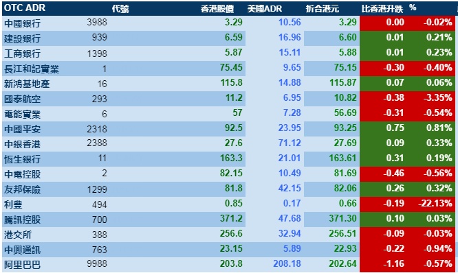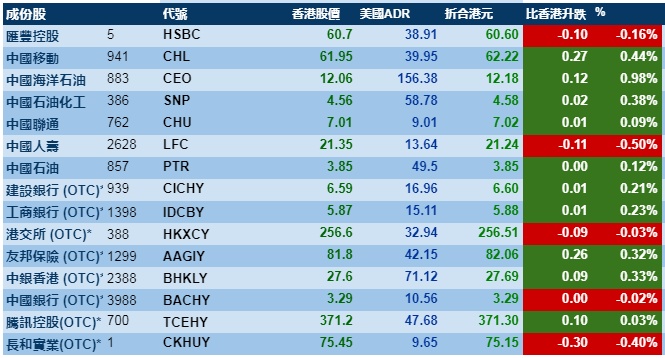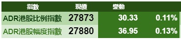智通财经APP获悉,12月18日,美股再刷新高,港股ADR指数小幅上升,按比例计算,收报27873点,涨30.33点或0.11%。大型蓝筹涨跌不一,汇丰控股收报60.60元,较港收市升0.10元;腾讯控股收报371.30元,较港收市升0.10元。
