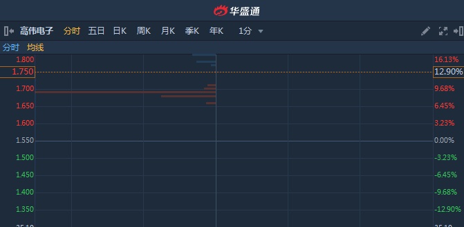 智通财经APP获悉,高伟电子(01415)昨日盘后发盈喜,预期年度溢利同比明显改善,早盘跳空高开,截至9时20分,涨12.9%,报价1.75港元,成交额61.42万。
