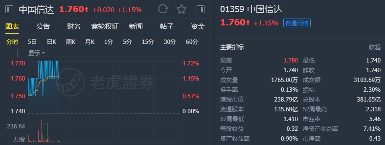 智通财经APP获悉,中金公司发布报告称,考虑到近期H股市场风险偏好提升,非不良业务剥离的推进有利于估值修复,维持中国信达(01359)盈利预测不变,上调目标价9%至2.30港元,并维持其“跑赢行业”评级。