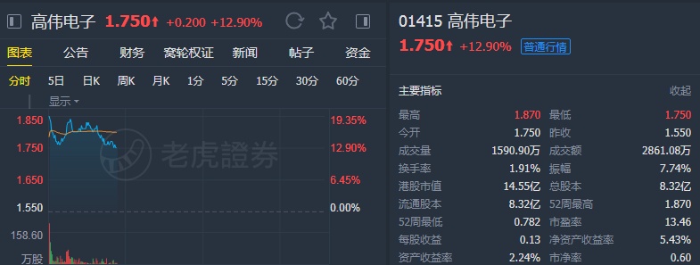 智通财经APP获悉,花旗发布报告称, 高伟电子(01415)昨日(17日)发盈喜,预期截今年12月底止年度溢利将明显改善。基于集团订单稳定及产量处上升周期,重申对其“买入”评级,目标价2.1港元。