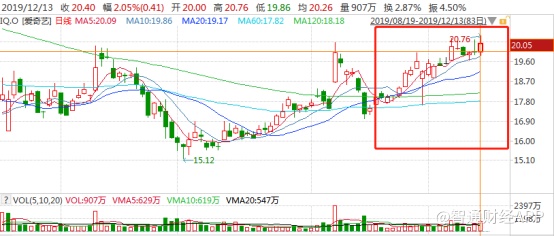 以在美股上市的爱奇艺为例,智通财经APP观察到,在爱奇艺推出“超前点播”后的几个交易日,公司股价持续波动上升。12月13日,公司收涨2.05%,股价达到每股20.76美元,站上4个月来的新高。