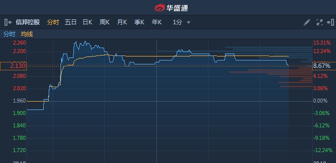 智通财经APP获悉,信邦控股(01571)获主席马晓明增持19.2万股。该股早盘急升后持续高位震荡,截至15时32分,涨8.67%,报价2.13港元,成交额623.9万。值得注意的是,该股盘中高见2.26港元,创半年新高。