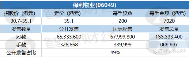 智通财经APP获悉,12月18日,保利物业(06049)配售结束。配售招股价30.7-35.1港元,最终定价35.1港元,每手7020港元。