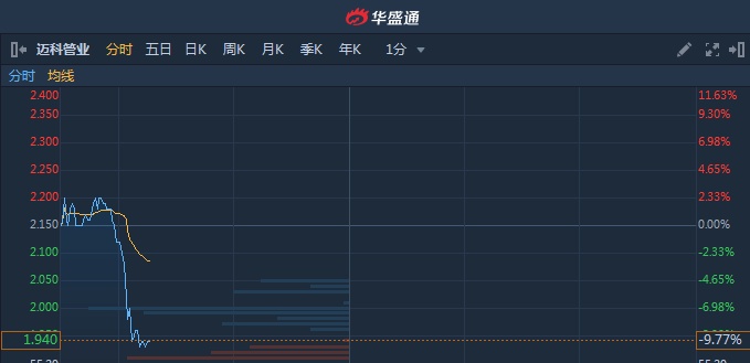 智通财经APP获悉,迈科管业(01553)股价破发,每股定价2.28港元,上市次日跌势延续。截至10时15分,跌10.23%,报价1.93港元,成交额1194万。