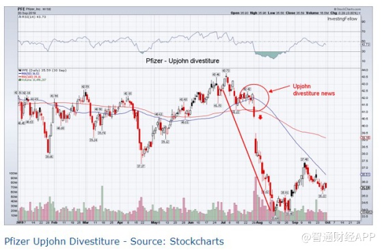 今年夏天,辉瑞公司(PFE.US)宣布将刚刚成熟的事业部普强(Upjoin)剥离,股价应声而降。尽管这次下跌被视为合理下跌,但事实是市场低估了辉瑞的股票价值。也许某些核心产品因“排他性损失”(Loss of Exclusivity, LOE)导致公司收入下降,但辉瑞正着手于一项专注于创新和生物制药产品的新战略,势必将在未来推动公司盈利。