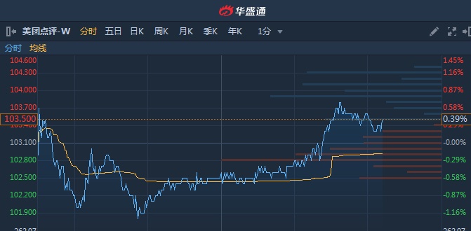 智通财经APP获悉,美团点评-W(03690)午后现两宗大手成交,每股作价102.6元,共涉及306.44万股,共涉资3.14亿元。截至15时11分,涨0.39%,报价103.5港元,成交额9.856亿。