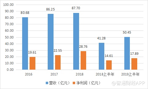 智通财经APP了解到,2016-2018年以及2019年上半年,贵州银行的营业收入分别为80.68亿元、86.25亿元、87.70亿元、50.45亿元,呈现逐年递增的趋势。净利润方面亦录得较为不错的增长,2016年至2018年间,该行分别录得19.61亿元、22.54亿元、28.77亿元,年复合增长率为21.1%。2019年上半年净利润为17.89亿元,同比增长22.43%。