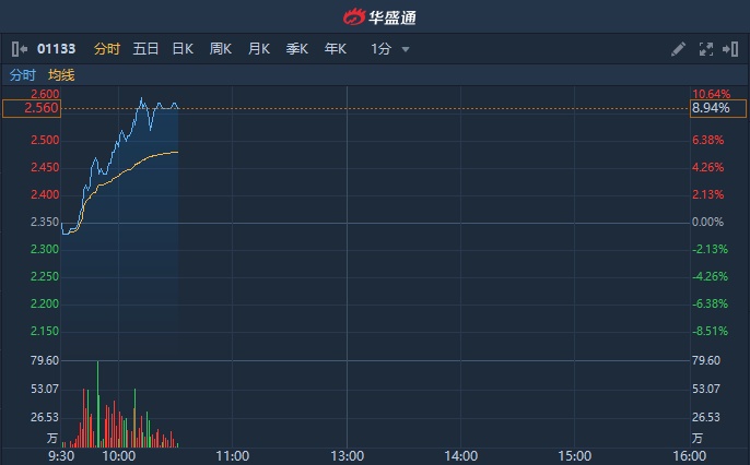智通财经APP获悉,哈尔滨电气(01133)于本周二公布,斥资7927.96万人民币收购哈尔滨锅炉厂2.7%股权,令所持股权由97.3%升至100%。该股今日续涨超9%,本周累计涨幅达27%。截至发稿,涨8.94%,报2.56港元,成交额2773.2万港元。