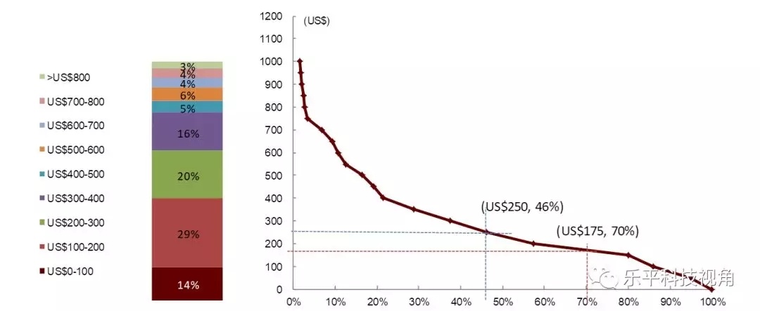 图表3: 3Q19中国市场手机价格带和渗透率一览