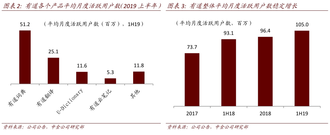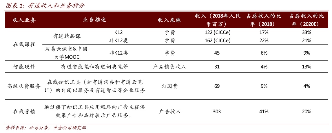 有道成立于2006年,是互联网科技龙头网易旗下的教育资产,提供综合的教育产品和服务。公司拥有一系列的教育工具类应用,如公司于2007年推出的有道词典以及2011年推出的有道云笔记。同时,公司还通过有道精品课(2014年推出)、网易云课堂(网易公司于2012年推出,2019年5月份被有道收购)以及中国大学MOOC(网易公司于2016年推出,2019年5月份被有道收购)提供面向K12阶段学生以及成人的在线课程。公司同时还开发和销售有道云笔、有道智能笔等教育智能硬件设备,以进一步提高用户的学习体验。