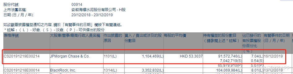 智通财经APP获悉,联交所最新资料显示,12月16日,摩根大通增持海螺水泥(00914)110.45万股,每股作价53.3037港元,总金额约为5887.39万港元。增持后最新持股数目约为9157.27万股,最新持股比例为7.04%。