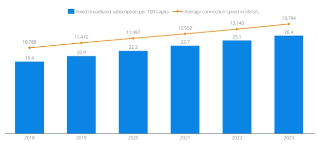 在线旅游预订行业的核心是为旅行者提供互联网产品或服务。在过去几年中,固定带宽普及率稳步增长,且未来还会进一步增长。全球范围内的平均网速也在上升,将促使来自亚太地区和拉丁美洲等新兴地区的旅行者更多的使用在线平台来预订旅游产品或服务。