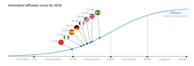 从地域上,中国有望以超过10%的增长率领跑,而美国和欧洲同期的增长率将低于5%。下图的曲线也显示了在线旅游预订的增长空间。
