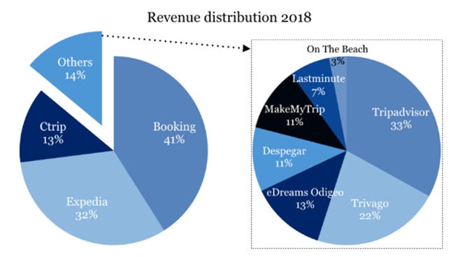首先,公司的规模提供了巨大的竞争优势。旅馆和度假村更愿意与业界领先的平台合作,这可以为他们提供获得更多预订的最佳机会。作为行业领导者,Booking具备品牌认知度。尽管面对来自Expedia(EXPE.US)的激烈竞争,其仍在2018年稳坐行业第一的宝座。